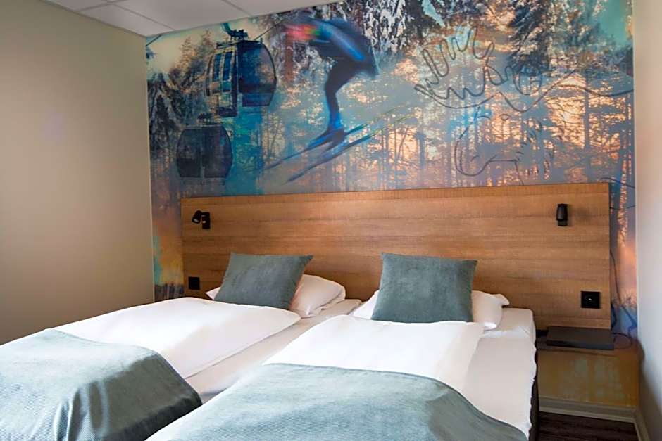 This double room features a small rock climbing wall and a bean-bag chair. There is also a hairdryer in the private bathroom.